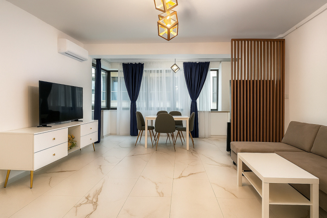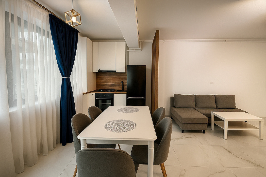 Locuința este complet mobilată și utilată, amenajată modern și cu atenție la detalii, perfectă pentru cei care caută confort și eleganță.